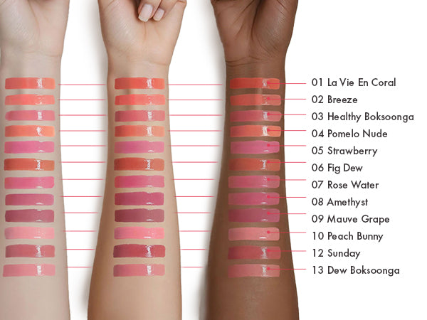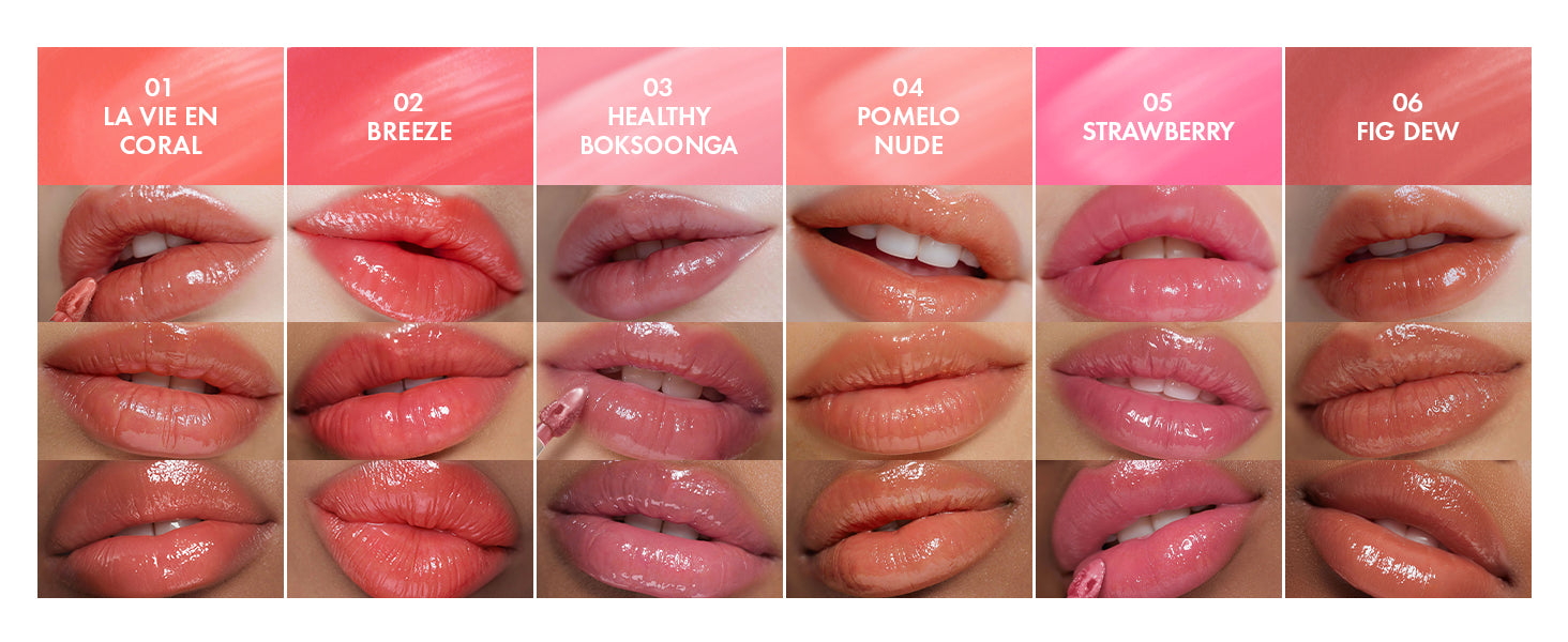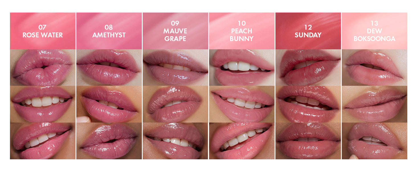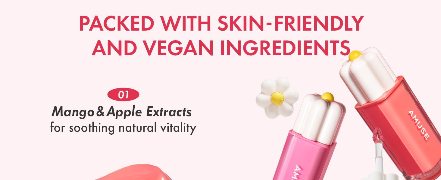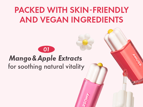 Dewy and long-lasting 35% water-infused vegan lip tint, in a light and fresh watery texture. Color pigment adheres to lips perfectly, and dewy glow rises up, leaving a water-coating finish on your lips.